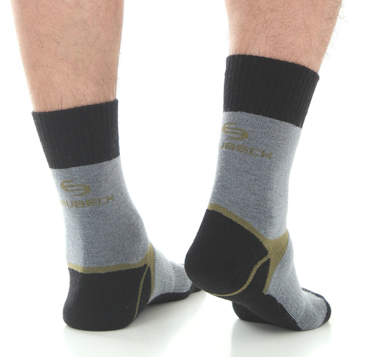 Man's thermo socks Brubeck Treking Light are multifunctional socks designed for trekking but also suitable for all sports, outdoor activities and for casual wear. With high-quality materials they provide comfort even during intense physical activity. The reinforced inner layer TERRY absorbs and evenly distributes pressure during active workouts. Construction of the fabric based on polypropylene fibers containing silver ions provides the socks with innovative resistance during wear and anti-bacterial ability to prevent excessive odors.