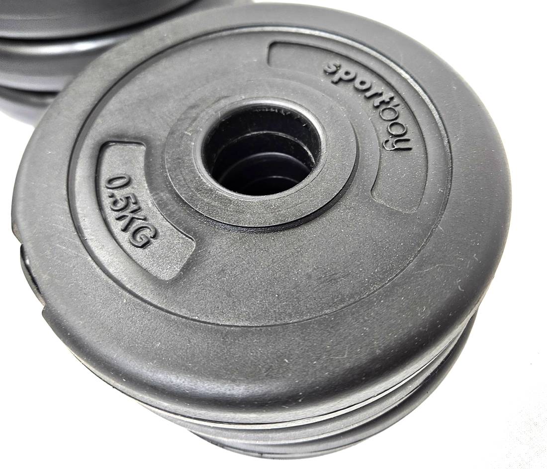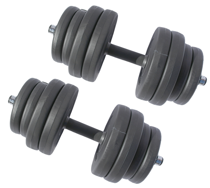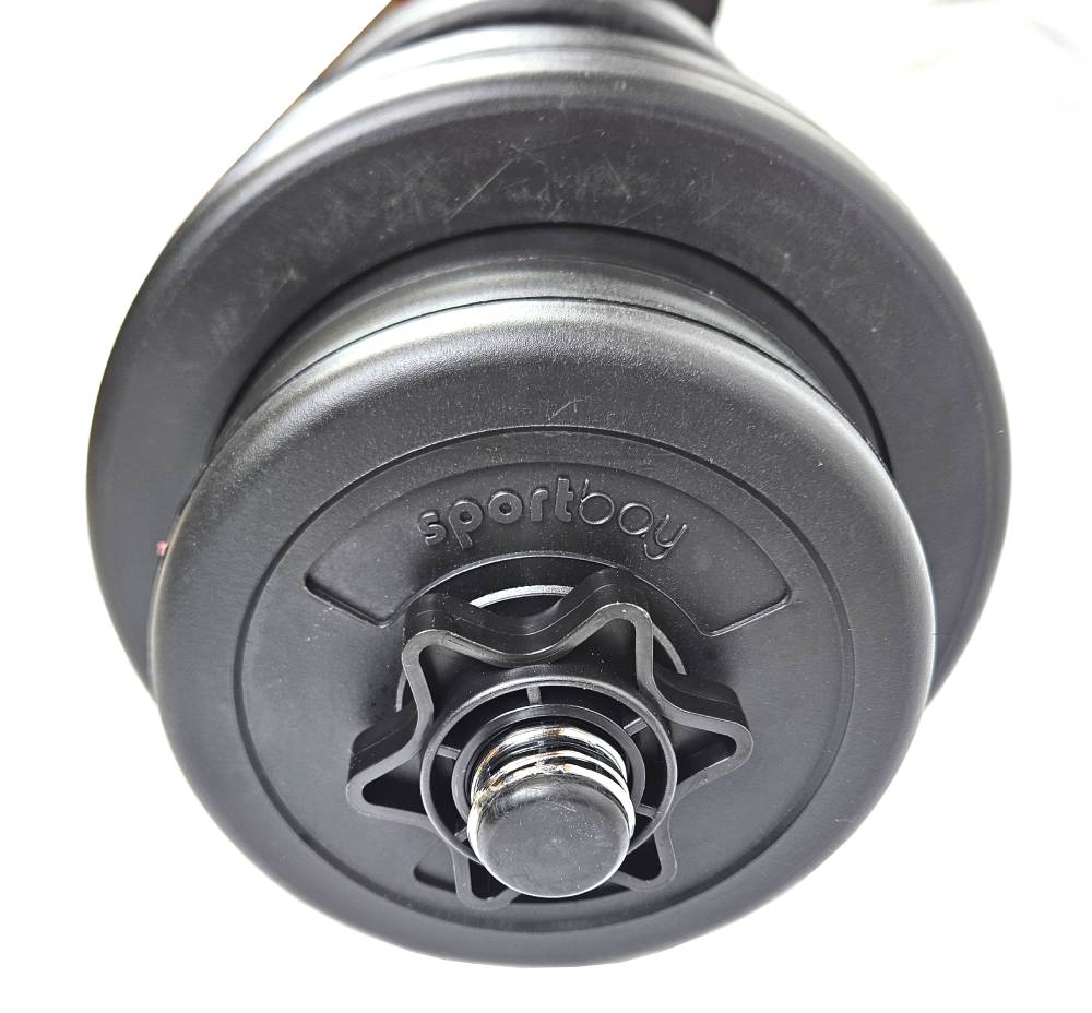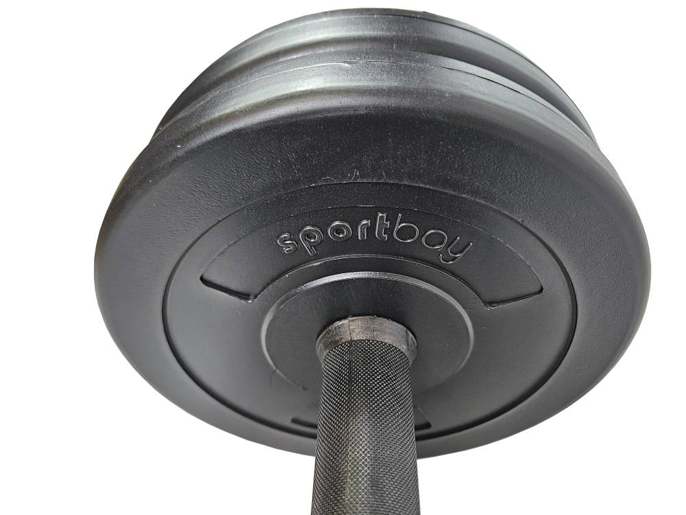 This is a unique and affordable set of one-hand loading dumbbells with cement filling. The axle of the dumbbells is made of high quality metal material and is threaded at both ends for safety sockets. Discs of the dumbbells are then made of plastic with cement filling. Thanks to the loading system the weight of the dumbbells can be adjusted quickly and easily which allows many kinds of exercises for all performance categories of users. The dumbbell´s axle of 26 mm diameter allows loading weights with 26 mm drilling.