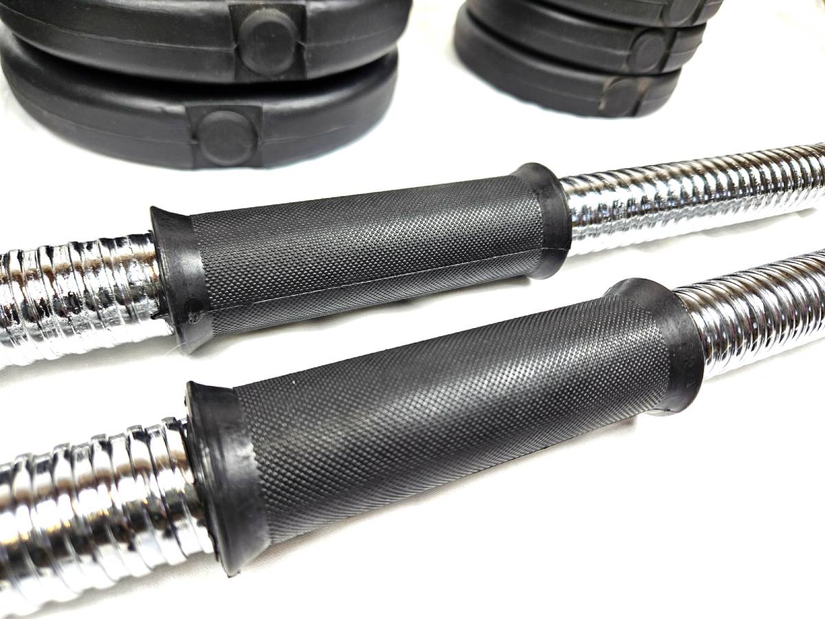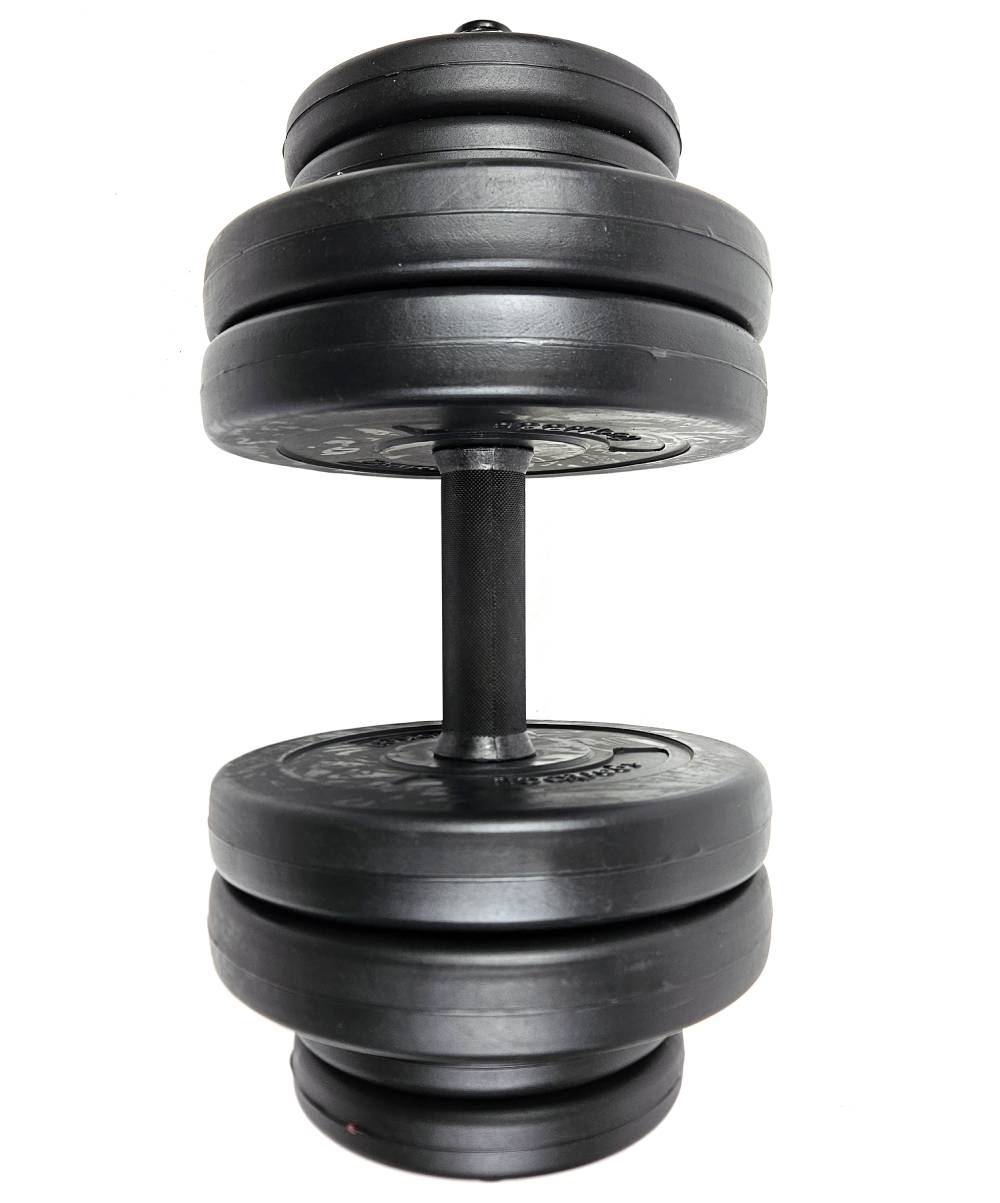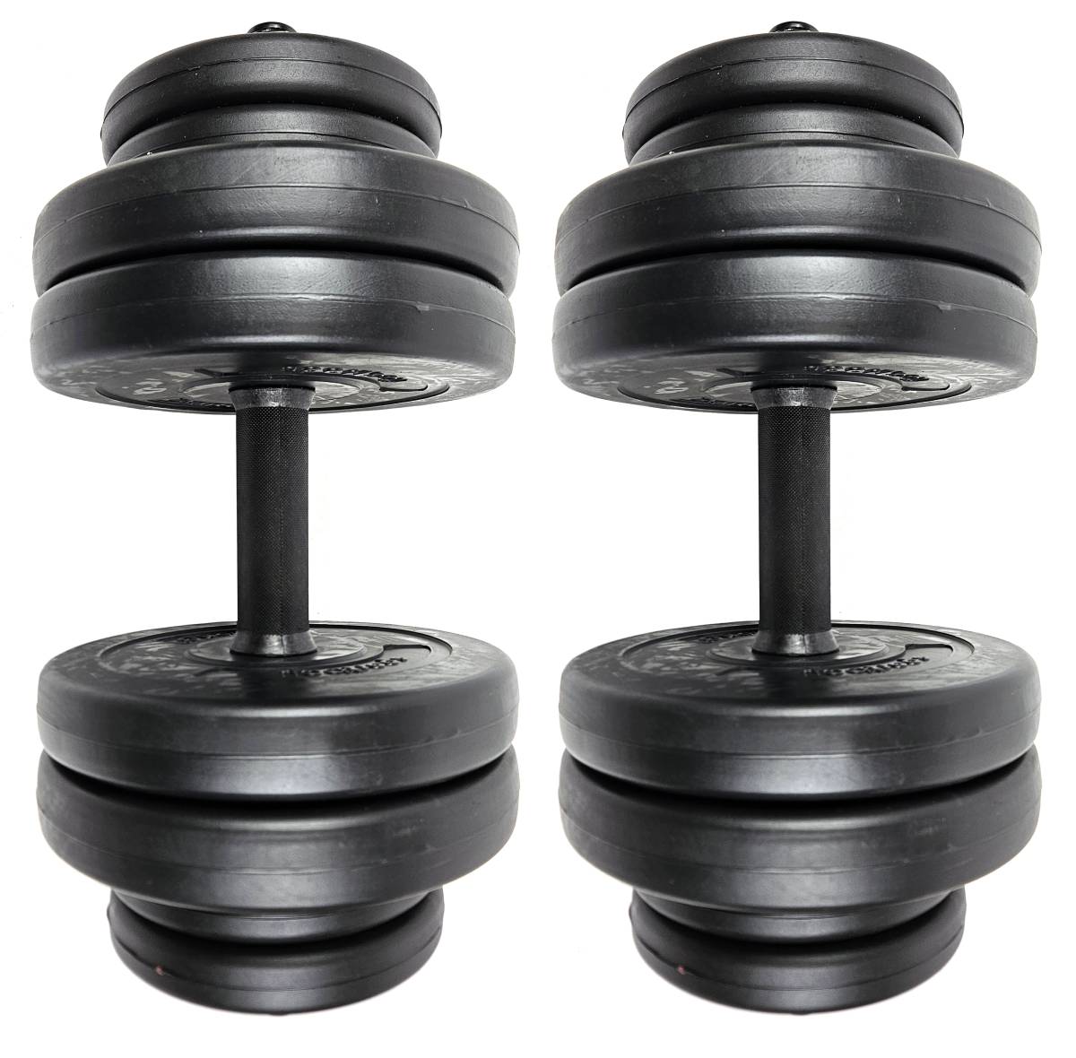 This is a unique and affordable set of one-hand loading dumbbells with cement filling. The axle of the dumbbells is made of high quality metal material and is threaded at both ends for safety sockets. Discs of the dumbbells are then made of plastic with cement filling. Thanks to the loading system the weight of the dumbbells can be adjusted quickly and easily which allows many kinds of exercises for all performance categories of users. The dumbbell´s axle of 26 mm diameter allows loading weights with 26 mm drilling.