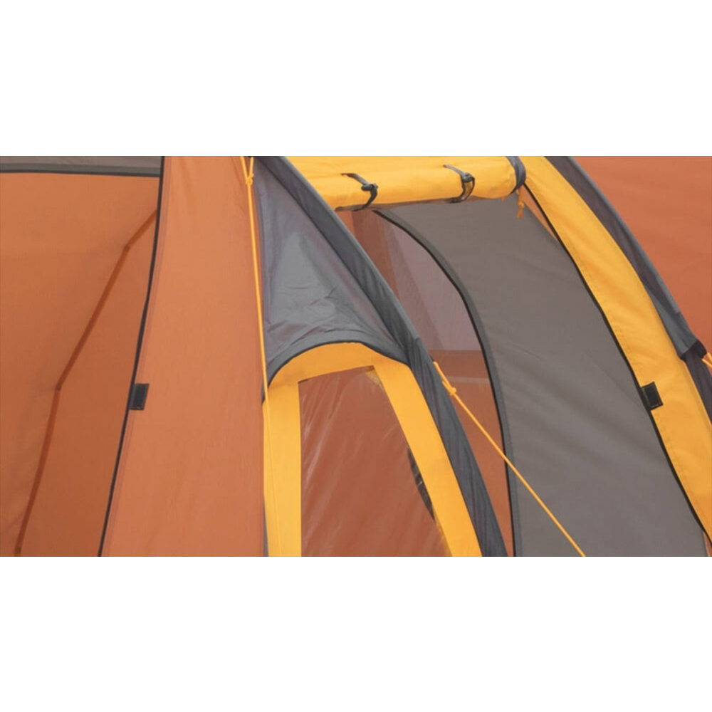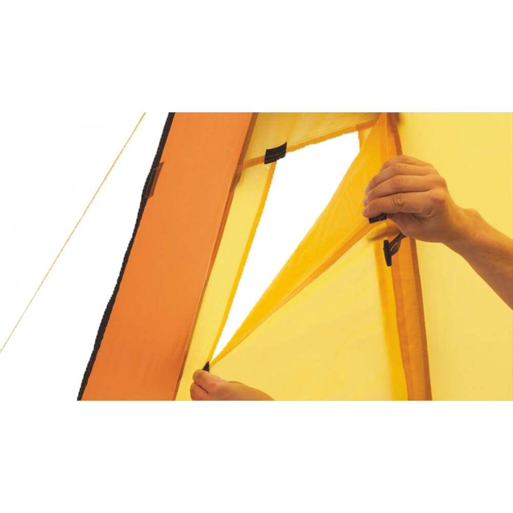 The Easy Camp Eclipse 300 Orange is a spacious dometent for campers who want a bit of extra space. The tent has a sleeping compartment for 2 or 3 persons and a spacious front portion for your stuff or to hide from rain. The tent also has 2 entrances. The large windows provide sufficient light and ventilation. Does the twilight starts? You can find a hook from the ceiling to hang your lantern.