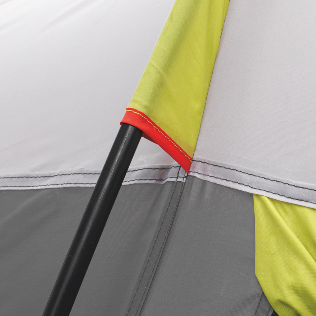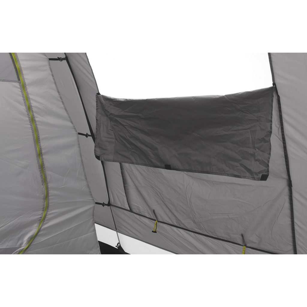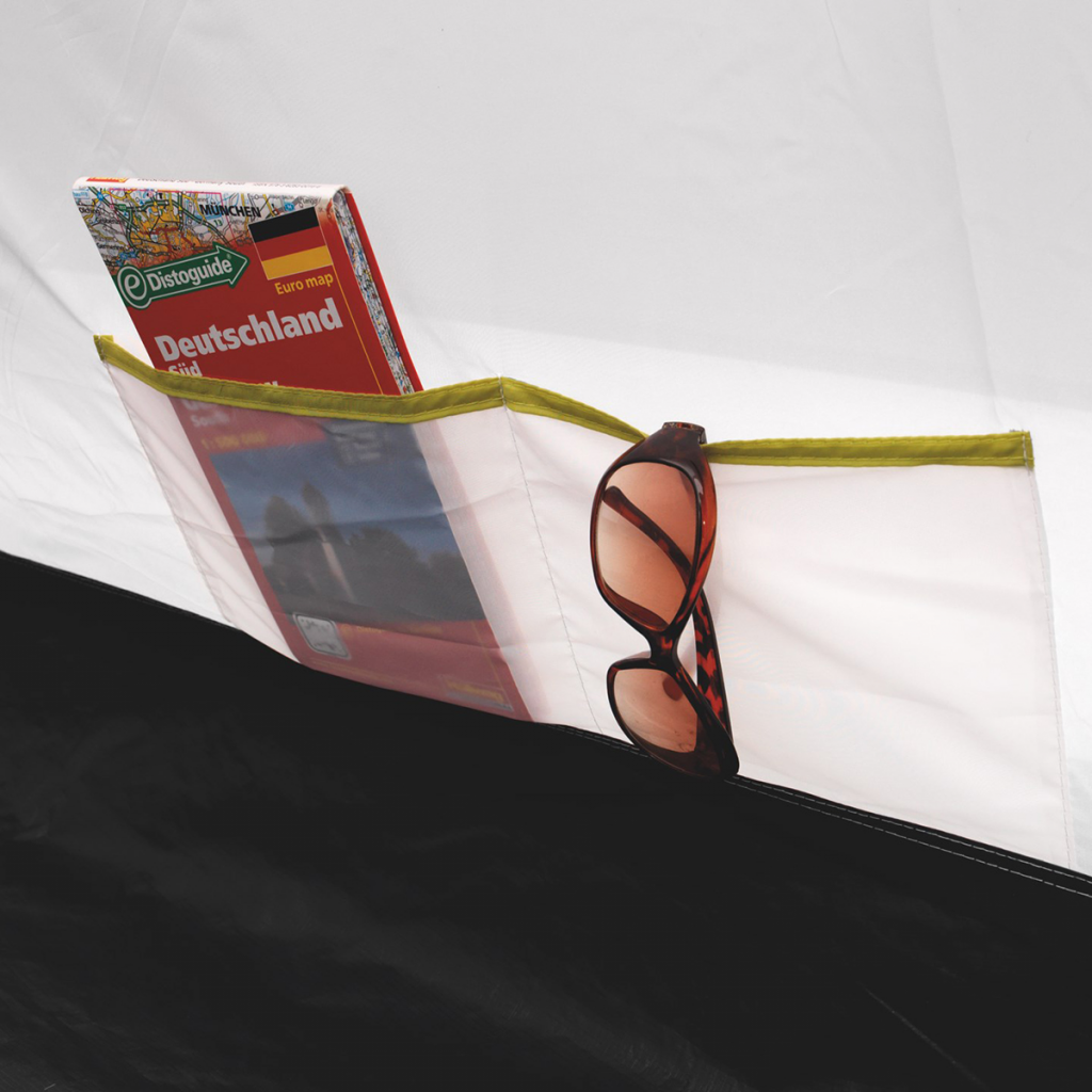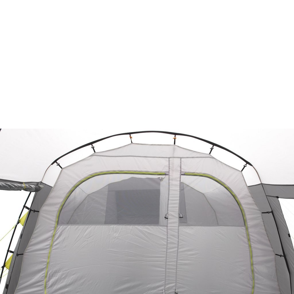 With enough space for up to eight adults, this Huntsville 800 with vis-à-vis design has a smart, subdued color scheme and spacious main room in the central cabin with large windows. This tent has four sleeper cabins and a main cabin, with double gauntlet doors and hanging dividers. The doors are equipped with insect goggles to keep the insects out. A rear vent panel and vent holes on the inside plus gauze panels on the interior doors ensure excellent air circulation. The full size swivel slider can easily be detached for cleaning.