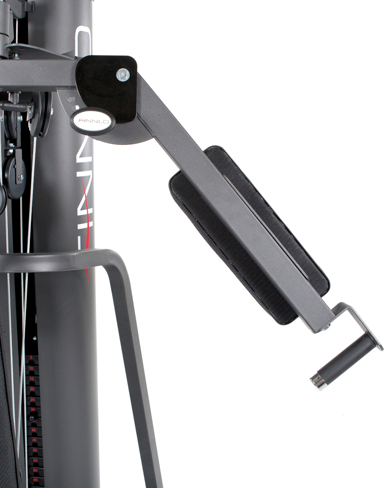 The Finnlo Autark 1500 is built to the highest standards with quality engineering and upholstery. The leg unit is particularly impressive with the ability to perform both leg extension and leg curl from the seated position by the simple adjustment of a pop pin. It even has four position adjustment to accommodate all leg sizes. The seat with hand grips is height adjustable and the backrest also has flexible adjustment. The seated row/curl station is to one side to give freedom of movement and has a footrest to anchor to. Also comes with a well padded pec station, padded lat bar for neck protection, abdominal crunch facility and an 80kg weight stack that can be upgraded to 100kg.