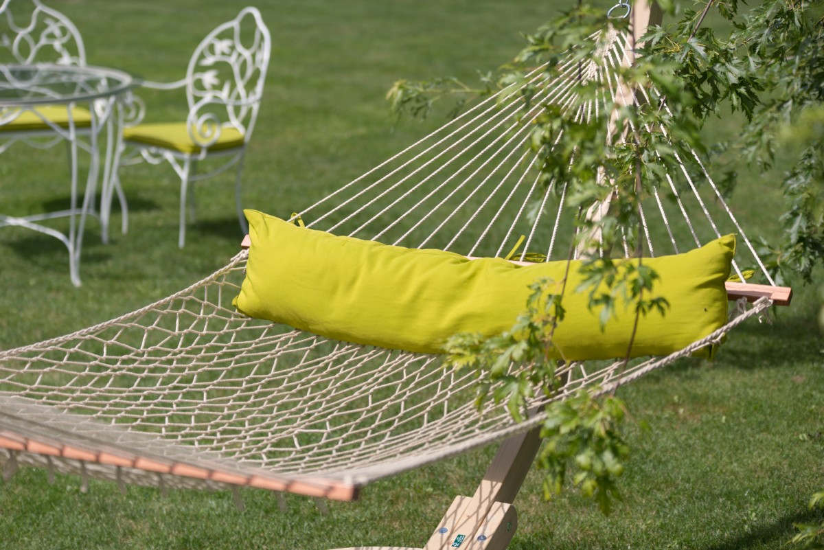 The California La Siesta is a comfortable hammock. This is a kingsize hammock where you can relax. This hammock is provided with a removable cushion and the lying surface is made of ropes in a net assembly. The ropes are so soft that it does not feel synthetic. In addition, the California is weather-resistant and dries quickly, so you can let him hang all year outside!