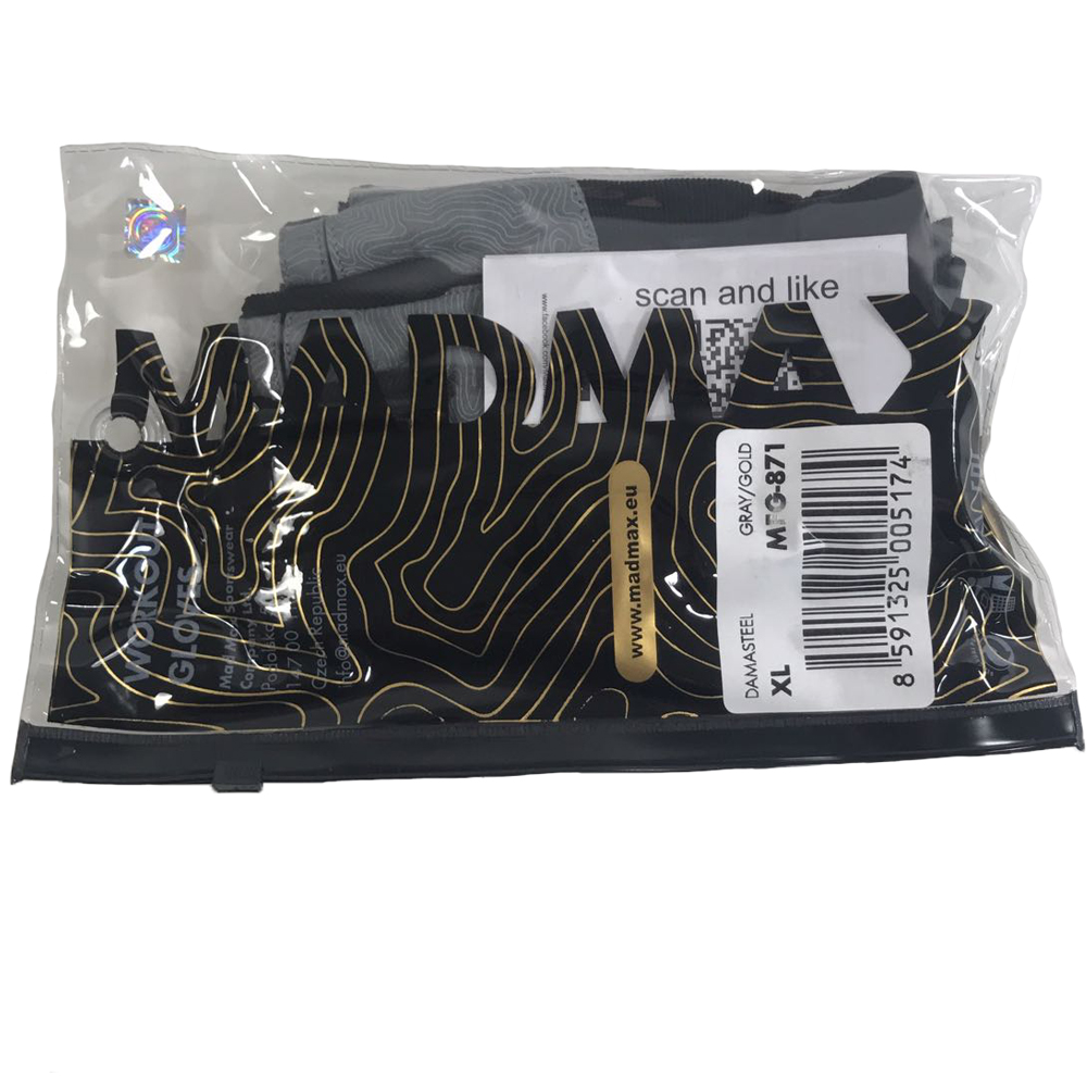Are you looking for stylish, yet uncompromisingly functional gloves? Then the damasteel model is the one for you. A black-and-grey design complemented by golden accessories captivates everyone. The Damask steel pattern on the dorsal part of the hand doesn’t serve as a mere adornment, but it indicates that this glove is as tough as Damask steel itself. The padding in the palm area is specially and anatomically stitched in order to achieve the greatest possible comfort. The top of the glove is designed to sweep-away the perspiration from your hands flawlessly. The Velcro fastening is complemented by the MadMax gold logo.
