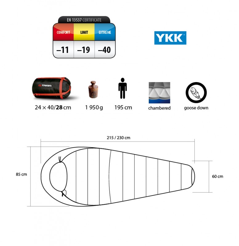 Trimm NORDIC sleeping bag is a 4-season sleeping bag, designed for use in exteme, challenging environments. The Vector 2's insulation comes with goose down 90/10- 650 cuin filling. YKK (the best zippers producer in a world) two way zipper ensures fluent zipping. The shell is made from Soft nylon ripstop DWR nylon with a water resistant finish. It has the addition of anti slip pads on the underside of the bag to help keep you comfortably on your sleeping mat when you are sleeping on a slope. Ideal for expedition use.