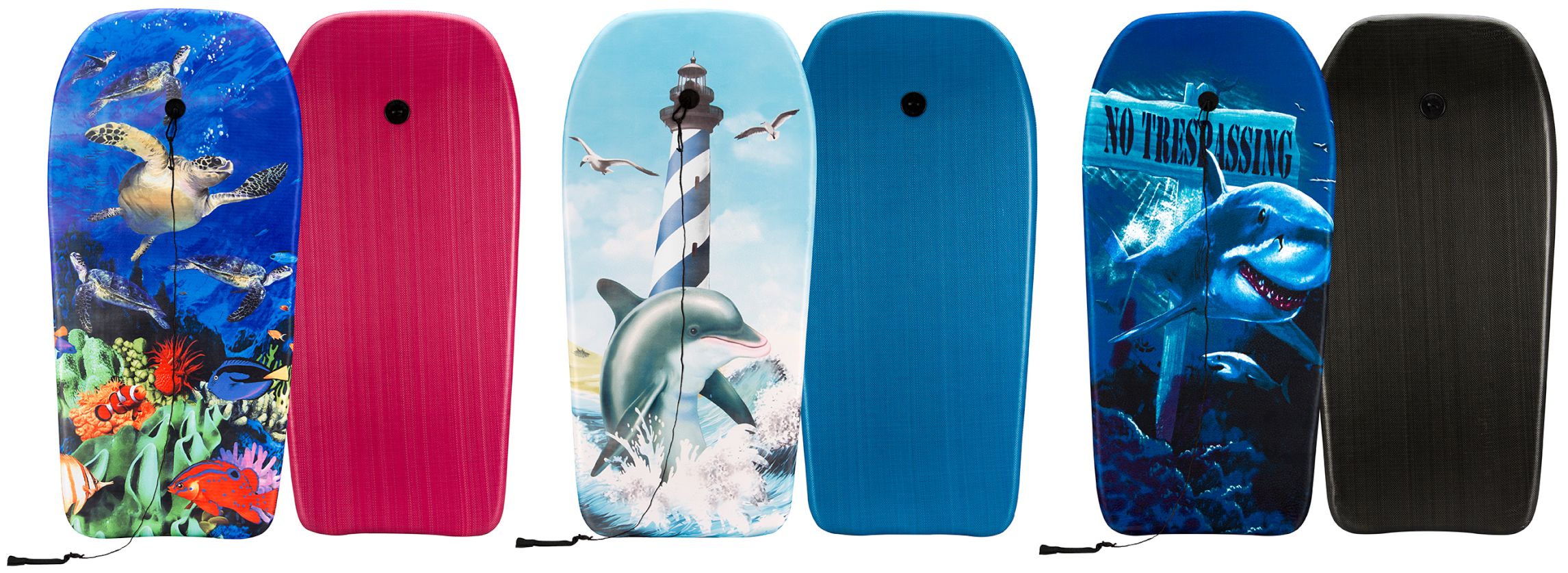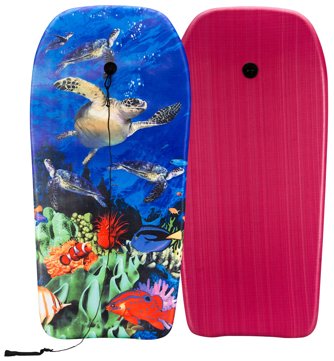 This body board is suitable for both young and old, beginner or advanced. The board is a lightweight and provides you, as it were, over the water rages! To the board is a cord with wrist strap with velcro closure for extra safety while body boarding.