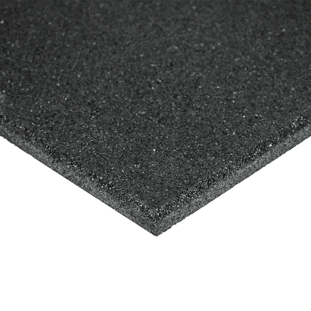 The high impact recycled rubber fitnesstiles are made and designed for Freeweight areas in gyms and crossfit centers. The standard rubber tile has a 2-layer system with on the bottom coarse granules and the 5mm toplayer has fine granules. The tiles are being produced in the EU and made of 70% Dutch recycled tires.