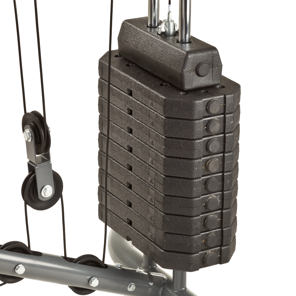 Training your arms and back muscles, you can use the upper pulley. for training your legs, you can use the leg extension curl, the exercise bike features a pulley for smooth operation. Other advantages are the flexible steel cables, soft padding, ergonomic backrest or non-slip handles. Using the easy-to-use mechanism, the resistance can be adjusted up to 45 kg (9 x 5 kg). All of the above makes the home gym ProfiGym inSPORTline C30 a popular and sought after product intended for home use.