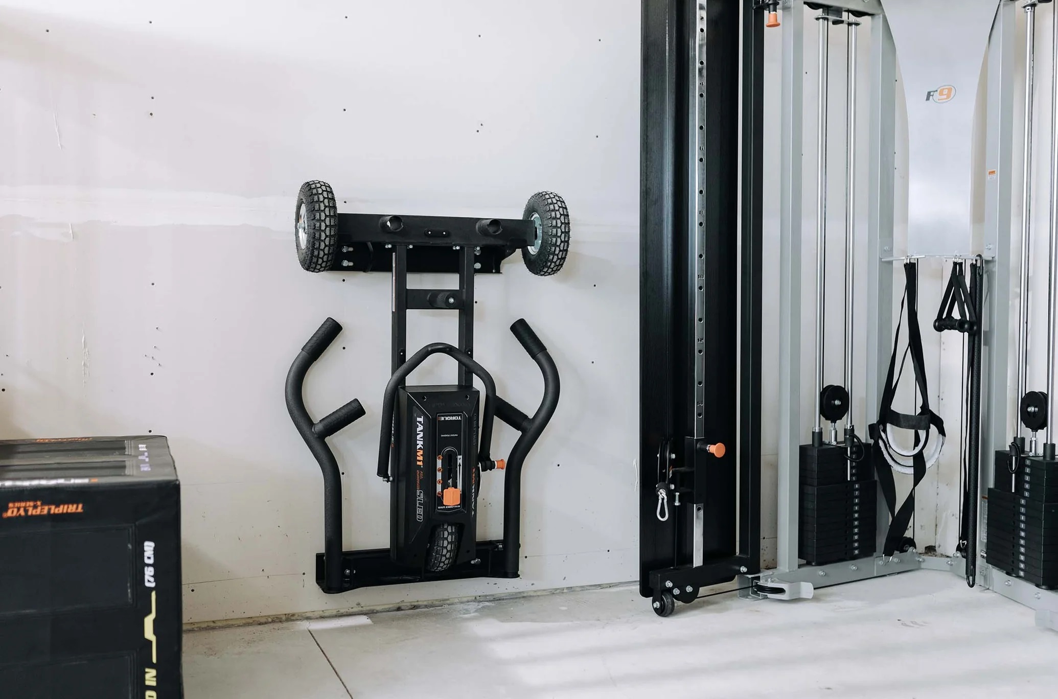 Store your TANK M1 and expand your training possibilities with the Torque Tank M1 Wall bracket. The Wall-Mounted Hanger was designed to keep your TANK M1 up off the ground in order to save you precious training space and also provide you with more training options and storage. This bracket keeps your TANK M1 protected from scratches with vinyl covered saddles and also keeps your wall safe from tire marks with a bottom rail that cushions the TANK’s bottom tire while hanging it up and taking it down.