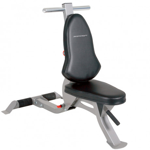 The Body Craft adjustable bench is a professional bench suitable for all basic dumbbell and barbell exercises. The sturdy steel frame with a profile of 5 x 7.6 cm is sprayed with a special Platinum Gray coating, which protects the frame from getting scratched. The The Body Craft adjustable bench has a 5-cm thick padding that is covered with a special half-vinyl material for maximum comfort while exercising. The backrest can be adjusted to six positions between 0° and 85°, allowing you to perform several different exercises. Chrome studs are essential for balancing exercises off the bench. The bench also features transport wheels that make the bench easier to handle and its 450 kg load capacity puts it among the best products in its category. Thanks to all these excellent properties, the Body Craft adjustable bench has become a popular model mainly for commercial use, though it can be used at home as well.
