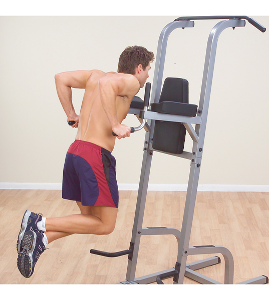 Designed to provide an intense ab workout while eliminating strain on the lower back, the Vertical Knee Raise Machine is hard to beat for vacuuming the waistline. Easy and convenient step entry makes getting started a breeze. Thick, comfortable DuraFirm back pads and arm supports reduce fatigue and discomfort allowing you keep working on your abs and obliques. Both machines feature Dip Station handles with oversized handgrips for a killer triceps/ deltoid/ lower pec workout. Rock solid support and stability is delivered via heavy-gauge steel frames with all-4-side welded construction.