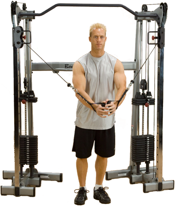 The Body-Solid cable crossover is a versatile and a multipurpose training center. This dual independent weight to use. The resistance system has an exact 1:1 ratio by the excellent patented gear system of Body-Solid. By means of this device you can easily on a small area dozens of exercises do, even with two people at once. The Body-Solid cable crossover gives you easy access to a multitude of exercises at the high, average and low pulley (adjustable height).