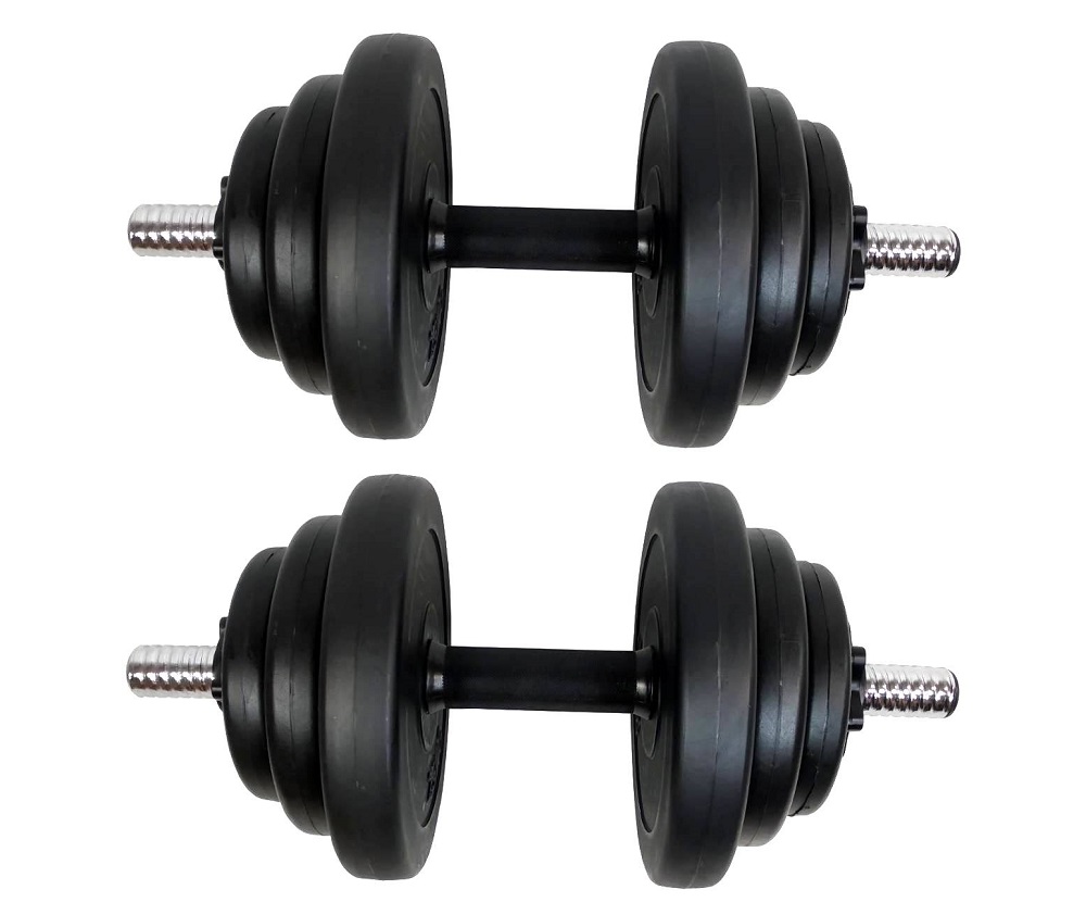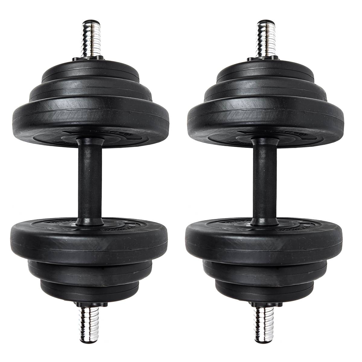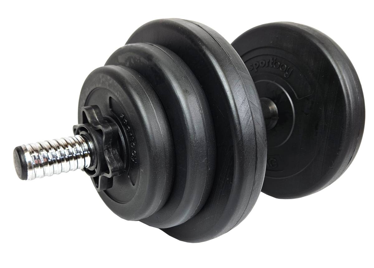 This is a unique and affordable set of one-hand loading dumbbells with cement filling. The axle of the dumbbells is made of high quality metal material and is threaded at both ends for safety sockets. Discs of the dumbbells are then made of plastic with cement filling. Thanks to the loading system the weight of the dumbbells can be adjusted quickly and easily which allows many kinds of exercises for all performance categories of users. The dumbbell´s axle of 30 mm diameter allows loading weights with 30 mm drilling.