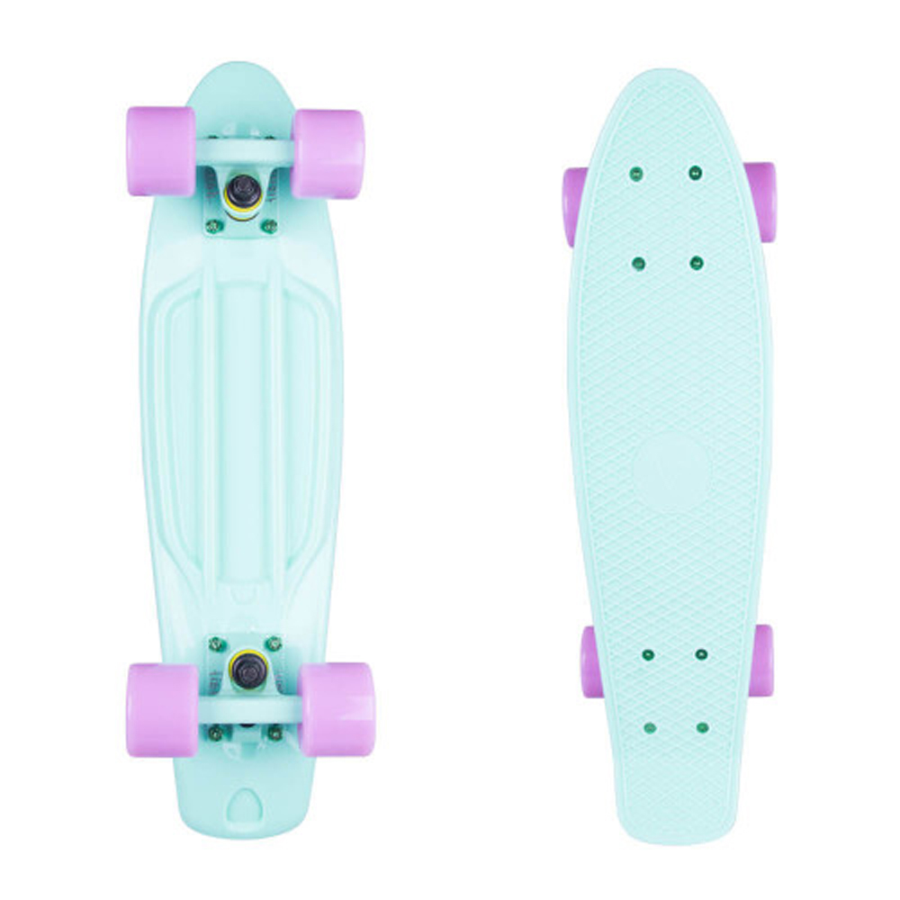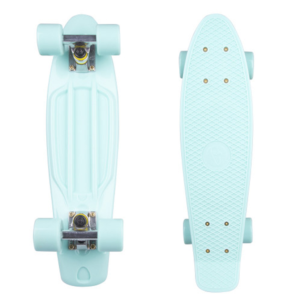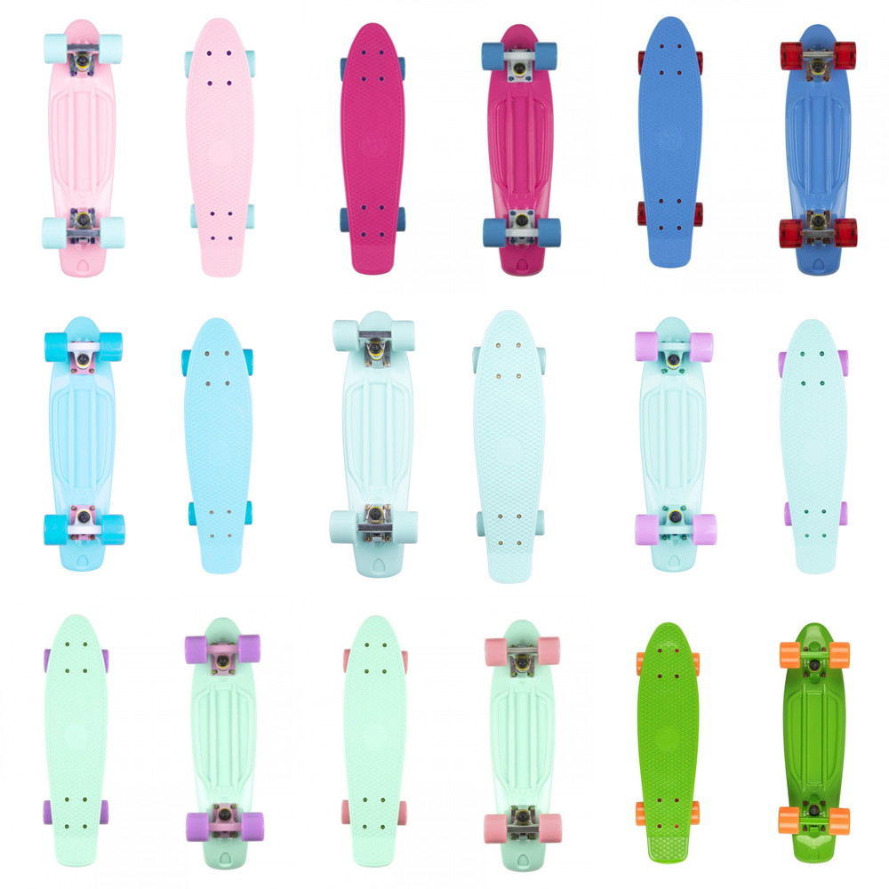 The Fish penny board classic 22” is a plastic skateboard with an attractive, old school design. The anti-slip grip tape on the top deck prevents the user from slipping off while the high quality, high speed ABEC 11 bearings provide excellent riding characteristics. Because of its size Fish penny board classic 22” fits into a backpack, a school locker or under your arm.