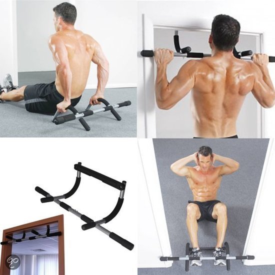 The Iron Gym chin-up bar, you can perform different exercises to train your upper body, such as pull-ups and chin-ups. When you attach the rod at the bottom of the door frame can here put under your feet firmly to train sit-ups, in addition, if you have the chin-up bar on the ground puts it is also good to use as a push-up bar!