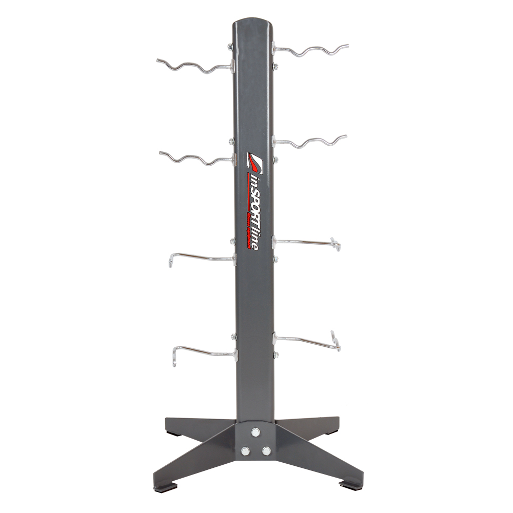 The Insportline accessories rack is a perfect solution for storing and organizing your various fitness accessories. The bottom of the rack is reinforced with long and wide legs this provides an extra piece of stability even when the rack is loaded completely full. The frame is made of a high-quality metal with hooks on the either side. This will keep you safe and neat accessories can be stored and not in the way. The accessories rack is suitable for both home use and in the gym.