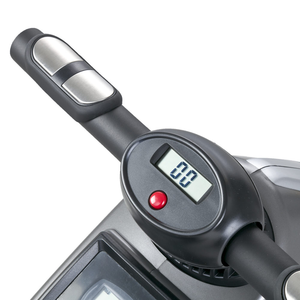• Heart rate sensor and display integrated into the handle