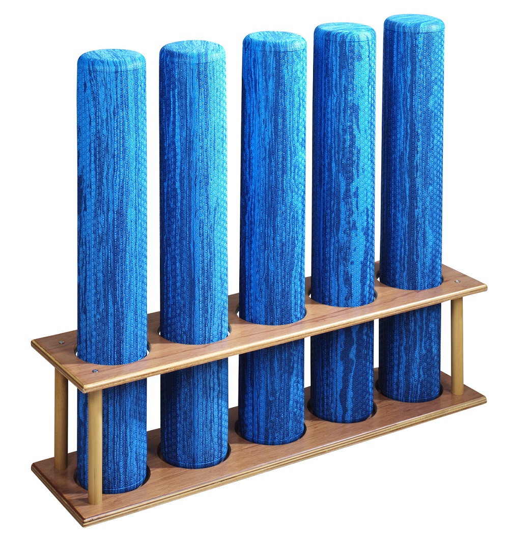 Rack for 5 Pilates Foam Roller made of high quality wood with a great look, 100 % recyclable. Foam Roller rack perfect for gyms and sport schools