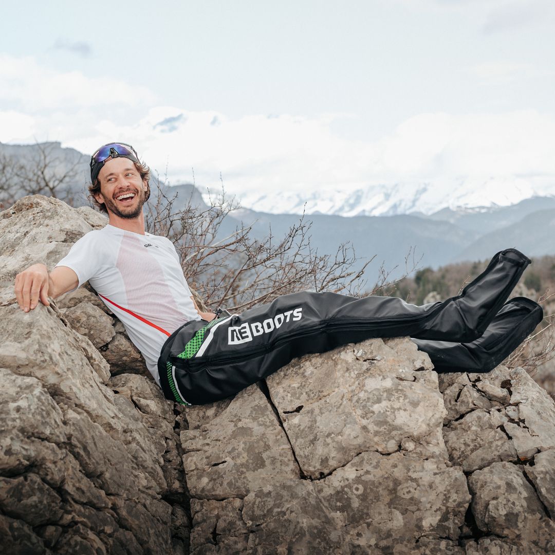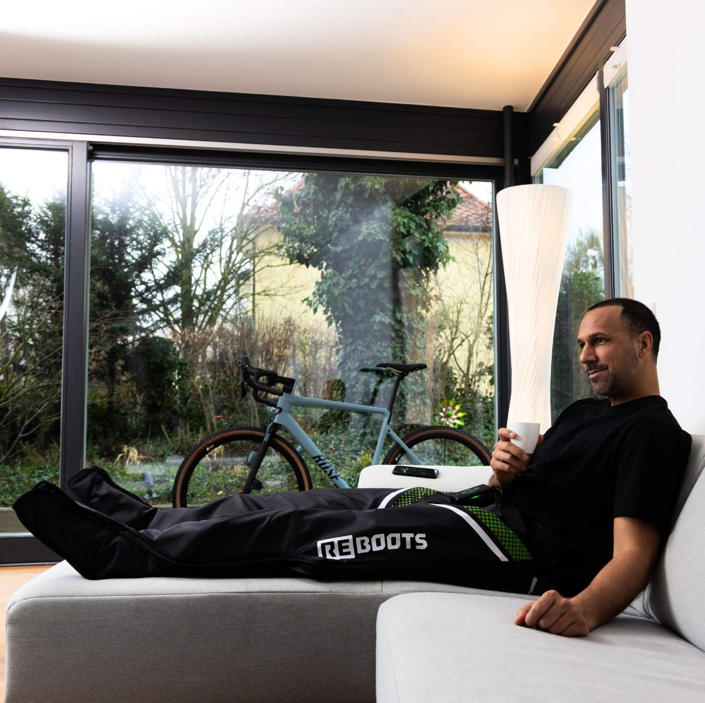 Our Reboots Go X is equipped with our Overlapping Technology and thus contains 8 overlapping air chambers per leg to distribute the pressure evenly and direct the blood flow towards the upper body. This prevents fluid build-up, increases the effectiveness of your Reboots application and ensures improved removal of waste products from the legs to the center of the body. The result: particularly thorough and complete regeneration for your legs!