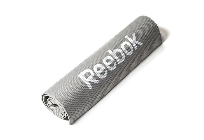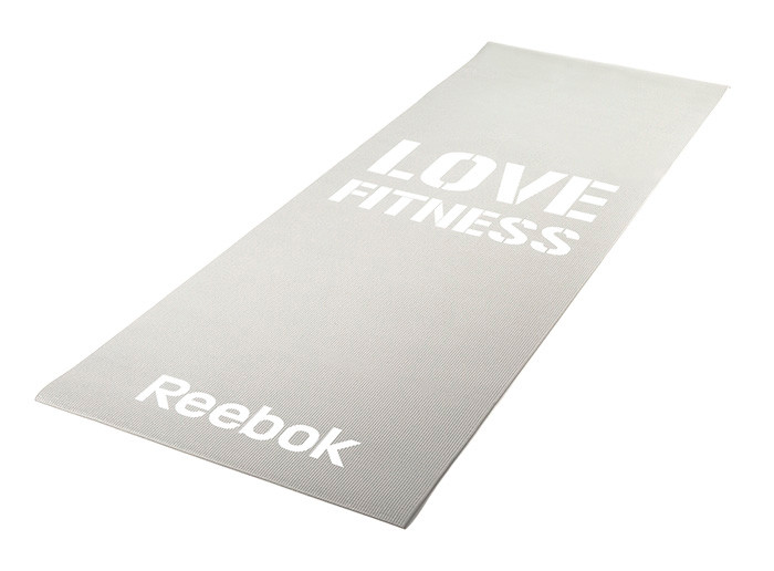 The stylish gray / blue fitness mat 'LOVE FITNESS' from the Reebok Women's Training Collection is ideal for stretch and fitness exercises.