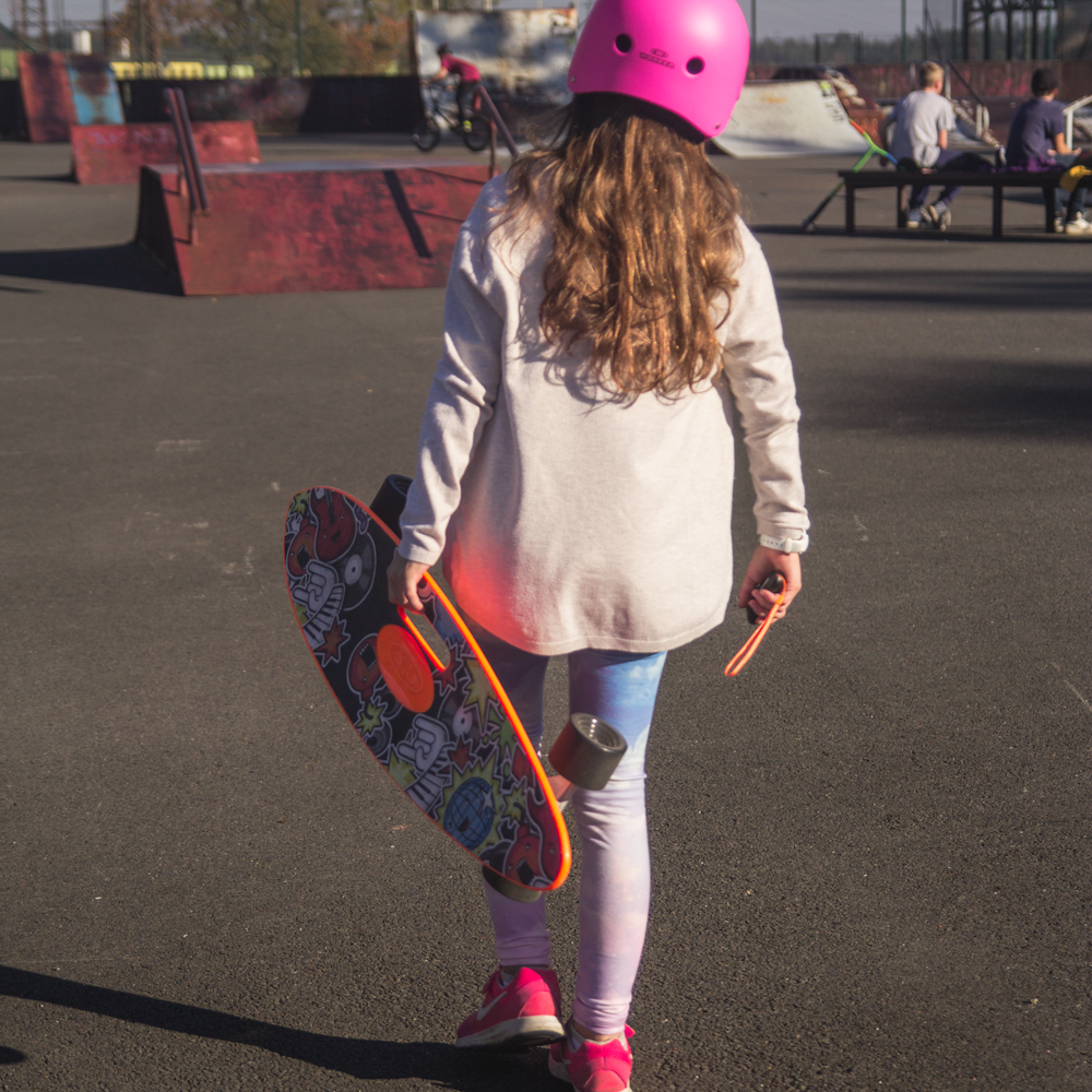The Worker Smuthrider electric longboardis controlled with an ergonomic, Bluetooth remote control (wireless), which allows you to regulate speed (max speed: 20kph) and brake. Moreover, the remote control also allows you to switch to the reverse mode and go in the opposite direction. Beginners may also appreciate the safer, slow speed mode.