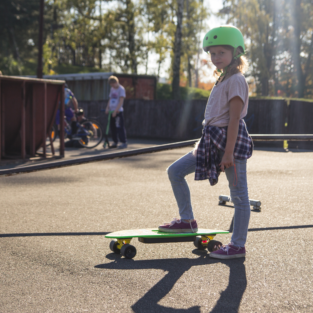 Its light weight (4.8kg), compact size (79cm/31”) and cut-out handle in the deck allows you to easily carry the longboard around when you are not riding on it. The deck made of Canadian maple features an anti-slip grip tape which prevents you from slipping and falling off the longboard. The graphic printing on the grip improves the overall design of the longboard. The 75mm wheels will deal with an uneven surface. Moreover, they also provide excellent stability on paved roads and/or bike trails. The wide, 5” aluminum trucks allow for easy turning. Last but not least, the Worker Smuthrider electric longboard features the high quality, high-speed ABEC 7 bearings.