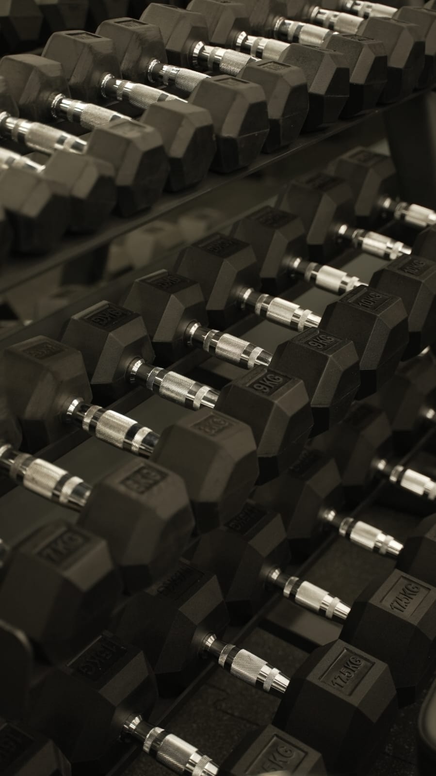 The set contains of total 8 pairs Hexagonal dumbbells from 5 kg to 22.5 kg step of weight 2.5 kg. and total set weight 220 kg. Perfect and essential set for a gym or cross fit box!