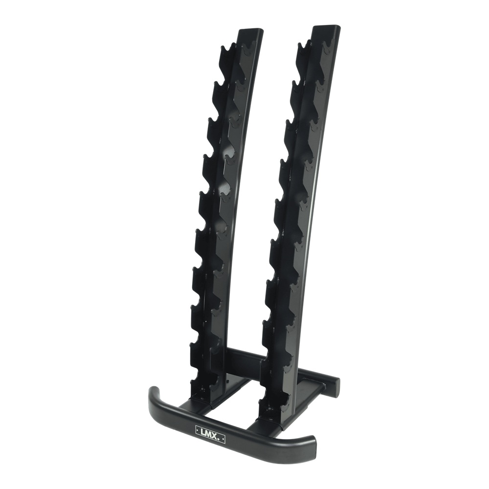 The LMX1011 LMX.® Vertical dumbbell rack has a black powder coating and offers space for 10 dumbbell sets.