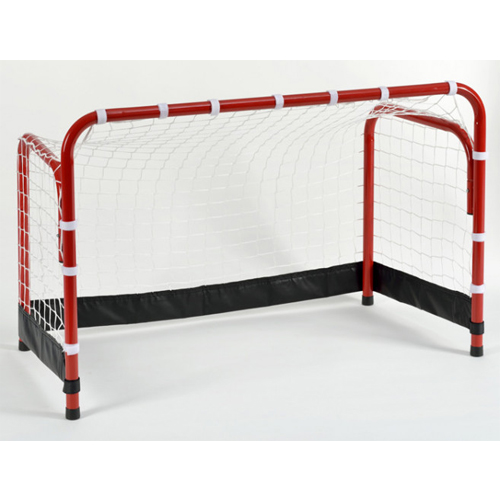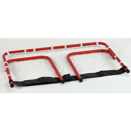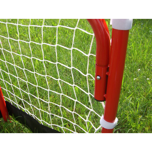 Het volledige frame bestaat uit ongeveer 28 mm dik verzinkte buizen met rode poeder coating. Dit maakt het doeltje extreem weerbestendig, maar dankzij de vloerbeschermers van pvc is het doeltje ook zeer geschikt voor indoor spelletjes. De zeer stabiele beugels worden simpel uitgeklapt met een easy click systeem en het scheurvaste net van 2 mm dik polyester is gemakkelijk te monteren. De onderkant van het net is extra versterkt met een zwarte pvc beschermstrook.