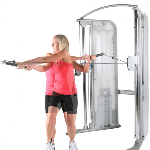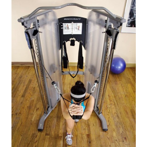 Body Craft PFT - kabelkolom is een professionele machine die de hoogste kwaliteit in zijn categorie biedt. Robuuste stalen constructie met een profiel van 8,5 x 4,5 cm. Wordt gespat met een speciale Platinum Grey kleur die de krassvrije structuur beschermt. De PFT-kabelpylon van Body Craft biedt meer dan 100 verschillende oefeningen die het hele lichaam effectief laden. Een breed scala aan accessoires is beschikbaar dankzij het brede scala aan mogelijke oefeningen. Met de mogelijkheid om de hoogte van de rollen aan te passen, kunnen de onderste ledematen worden getraind. De rollagers hebben een gewicht van 70 kg.