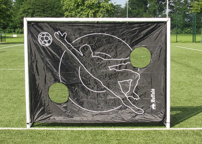 De Buffalo voetbaldoel world cup. De Buffalo world cup voetbaldoel is één van de grotere voetbaldoelen in de Buffalo serie. Het fraaie design, met het gegalvaniseerde en powdercoated, witte frame zal perfect staan in je tuin. De top kwaliteit geeft je zomers lang veel speel plezier. Super handig doel om je afstand schoten te oefenen. Door op dit doel te oefenen merk je dat je schoten binnen no-time veel beter worden. Wat de Buffalo doelen speciaal maakt is de drievoudige bevestiging van de extra dikke voorposten met de net posten, waardoor er een hoger doel is gecreëerd. De goalposten zijn uiterst robuust, waarbij de 2 posten voor extra dik zijn uitgevoerd, voor het echte voetbalgevoel! Het verankeringsysteem bestaat uit flexibele haringen, waardoor het doel zeer stevig en stabiel staat en het eenvoudig te verplaatsen is. Om het doel nog veelzijdiger te maken wordt er standaard een trainingsscherm bijgeleverd.