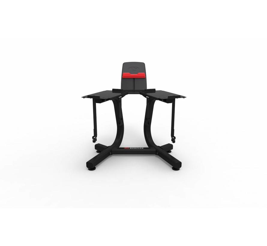 Uw training met de Bowflex SelectTech dumbbells wordt weer een beetje slimmer. De Bowflex® SelectTech Stand met Media Rack voorziet u van een gemakkelijke opbergplek om uw dumbbells te plaatsen EN een handig rek voor uw smartphone of tablet. Deze combinatie maakt dit product tot de perfecte combinatie van ontwerp en functionaliteit. U hoeft nooit meer te bukken om dumbbells van de grond af te halen - nooit meer. Daarbij heeft u nu eenvoudig toegang tot uw trainingsprogramma's, trainingsvideo's en meer tijdens het trainen. Hierdoor kunt u zich nog fanatieker met uw trainingsdoelen bezig houden in plaats van dat u traint "op de gok". Dit rek is geschikt voor de Bowflex® SelectTech® 552i0 en 1090 dumbbells.