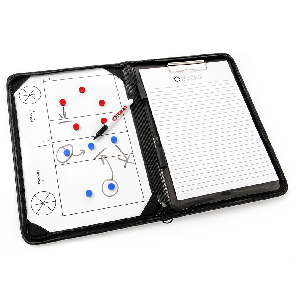De map is voorzien van een voetbalveld met meegeleverde magneten in meerdere kleuren zodat je duidelijke accenten kan leggen. De meegeleverde stiften werken als whiteboard markers en veeg je eenvoudig weer weg voor een nieuwe tactiek,