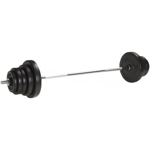 Gymstick 50 kg vinyl gewichten set is een complete combinatie van een halterstang, halterschijven en 2 schroefsluiters om de schijven vast te zetten. De halterstang weegt 7,5 kg en is 165 cm lang. Hij heeft een diameter van 28 mm en is ook geschikt voor standaard 30 mm schijven.