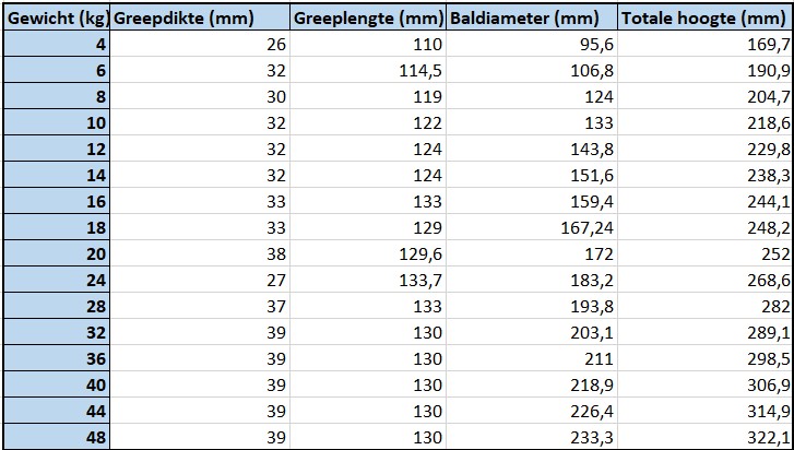 Kettlebells zijn perfect om in 20 minuten een full body work-out mee uit te voeren. Deze gietijzeren kettlebell staat bekend om zijn duurzaamheid. Hij heeft een poeder coating en is sterk, hierdoor beschadigd de kettlebell niet. De kettlebells zijn zwart, maar hebben allemaal een andere kleur handvat, waardoor je makkelijk het gewicht herkent.