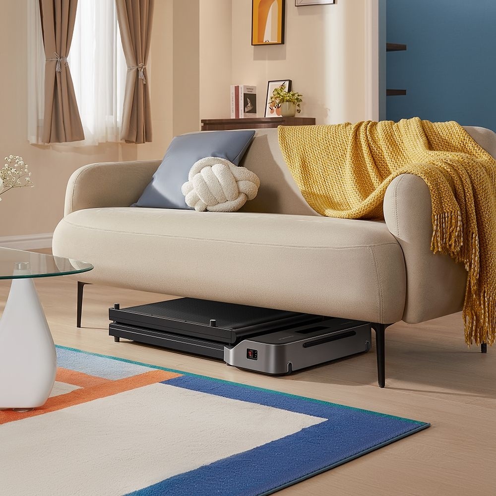 Deze ultracompacte loopband klapt dankzij een innovatief 180°-mechanisme op tot een ongelooflijk klein oppervlak van slechts 0,16 m², waardoor hij perfect is voor gebruik in huis of op kantoor. Direct klaar voor gebruik, zonder montage, zodat je moeiteloos actief kunt blijven – of je nu achter je bureau zit of in de woonkamer bent.
