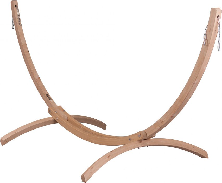De Canoa van La Siesta is een ideale hangmatstandaard, waaraan u uw 1-persoonshangmat aan op kunt hangen. Hij is gemaakt van Noorse sparrenhout met FSC-keurmerk. De Canoa is een stevig hangmatstandaard, doordat hij brede poten en een maanvormig model heeft. Hierdoor kunt u heerlijk ontspannen in uw hangmat, de Canoa is weerbestendig en dus kunt u deze standaard het hele jaar door buiten laten staan.