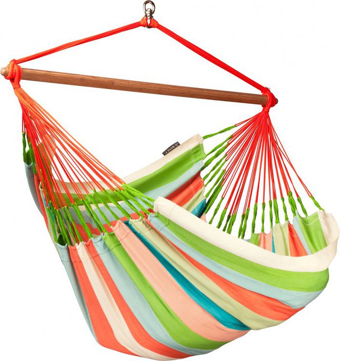 De Domingo Lounger van La Siesta is een hangstoel die gemaakt is van weerbestendig materiaal, en is geschikt voor jong en oud. Dit maakt de Domingo uitermate geschikt om buiten op te hangen. Bovendien heeft deze hangstoel een draaihaak, die zorgt er voor dat hij meedraait met uw bewegingen. Het maximum draagvermogen van deze stoel is 160 kg. Het zitoppervlak is volledig gemaakt van katoen en de vering bestaat uit een combinatie van duurzaam katoen en polyester. Minimaal ophanghoogte is 245 cm.