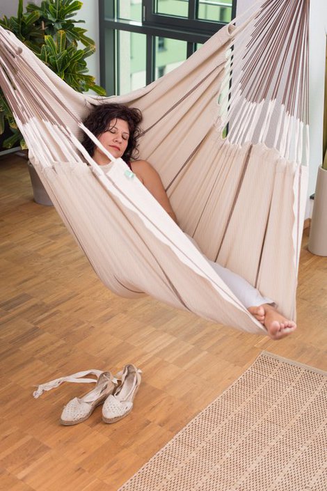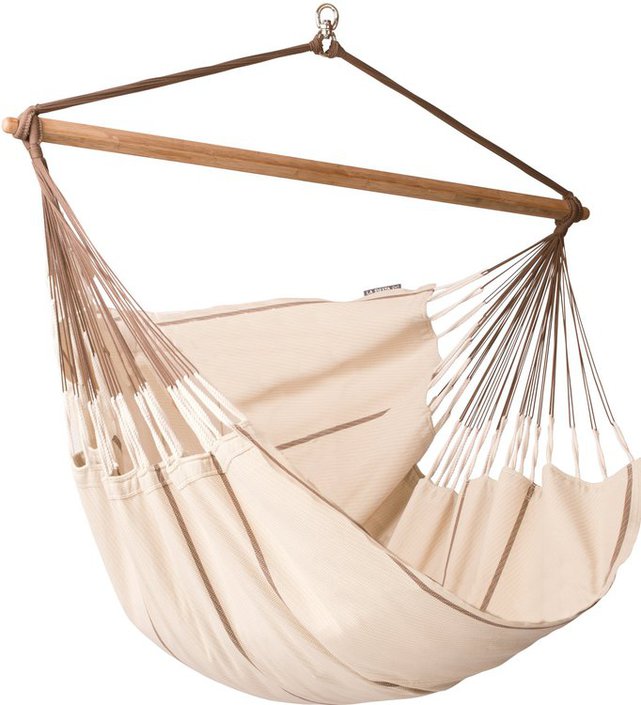 In de Habana Lounger hangstoel van La Siesta is het mogelijk om met meerdere personen lekker te relaxen. Uiteraard kunt u ook in uw eentje helemaal wegkruipen in de hangstoel en genieten van het mooie weer of een goed boek. De Habana Lounger familiehangstoel heeft een maximaal draagvermogen van 160 kilogram. Doordat de Habana vervaardigd is van honderd procent organisch katoen beschikt u met deze hangstoel over een milieuvriendelijke hangstoel. Daarnaast is dit model geproduceerd op basis van strenge ecologische en sociale eisen waardoor u zeker weet dat dit een fair product is. Minimale ophanghoogte is: 220 cm.