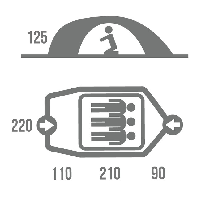 | Binnentent | breathable Nylon 190T + mesh mosquito net |