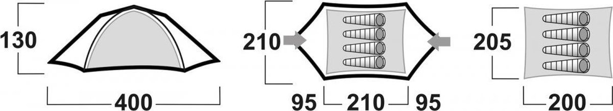 | Binnentent | Ademend Nylon 190T + mesh klamboe |