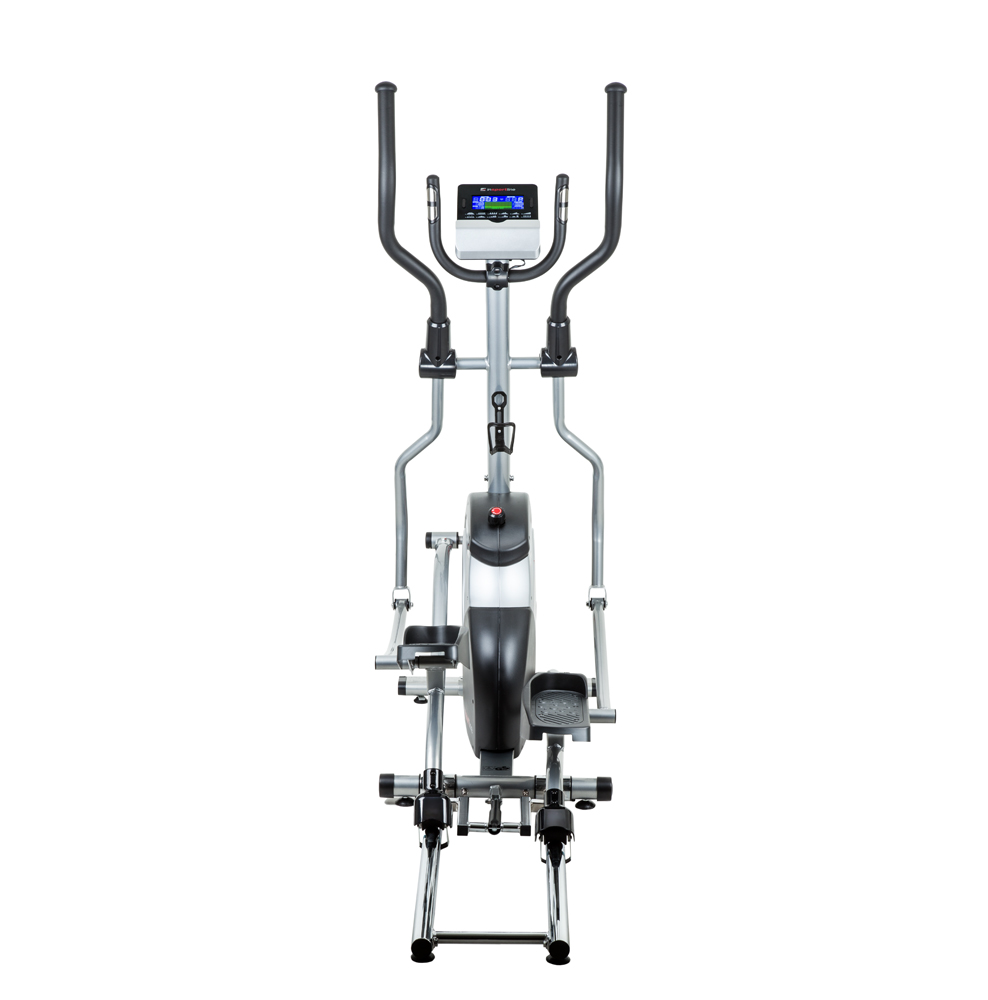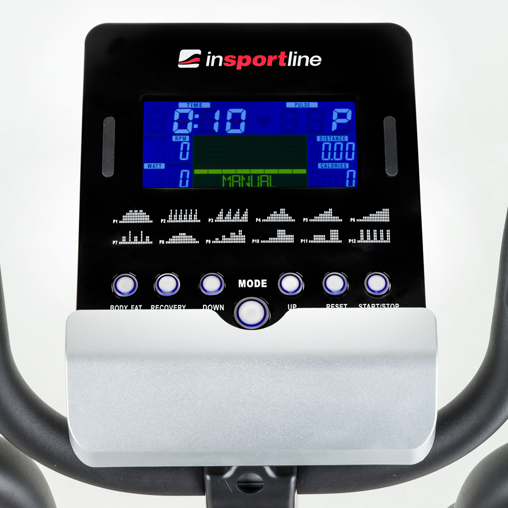 De inSPORTline Elliptical Trainer Combre is een stevige elliptische trainer met een front vliegwiel. Daardoor is zijn pedaal afstand korter ten opzichte van elliptische trainers met een achterste vliegwiel. De 56kg zware Combre elliptische trainer met de 150kg gewichtslimiet is geschikt voor personen tussen de 150-195cm lang. De achtergrondverlichting, duidelijke grafische display toont alle belangrijke informatie, zoals tijd, snelheid, omwentelingen per minuut, calorieverbruik, prestaties en hartslag gemeten door hartslagmeters. De bediening is eenvoudig en intuïtief. De display console beschikt over tablet, telefoon en magazine houders. Bovendien beschikt de Elliptical Trainer inSPORTline Combre ook een fles/bidon houder, ingebouwde transport wielen en het oppervlak verstelsysteem. Dankzij zijn inklapbare mechanisme, kan deze elliptische trainer worden ingevouwen makkelijk worden opgeslagen zonder al te veel ruimte in beslag te nemen.