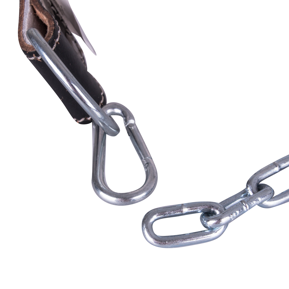 De Insportline Haltero lederen fitnessriem is een uitstekend trainingsaccessoire voor het lichaamsgewicht. Bij verdubbeling kan de 70 cm lange ketting aan de voorkant extra gewichtplaten bevatten. Bevestigd aan één kant van de riem met een sterke karabijnhaak, kan de ketting maximaal 25 kg gewichtplaten bevatten. De klinknagelversterking, sterke naden en weerstand tegen beschadiging zorgen voor een lange levensduur. Al het bovenstaande maakt de Insportline Haltero lederen fitnessriem tot een populair trainingsaccessoire.
