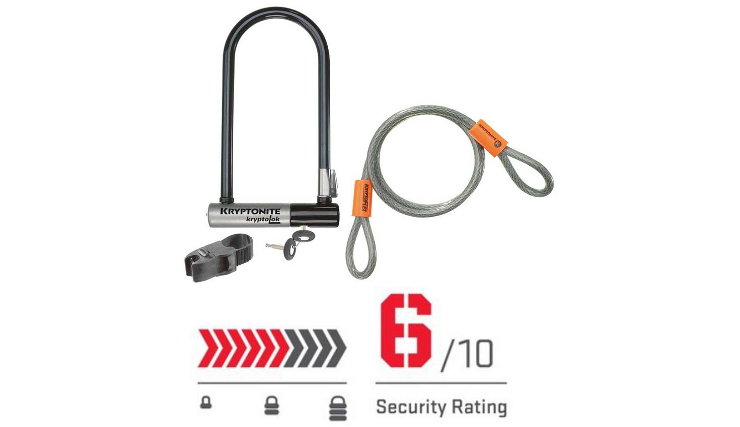 Een perfecte combinatie (beveiligingsniveau 6/10) van een Kryptonite KryptoLok series STD lock en een Kryptonite KryptoFlex® 1004 Looped Cable 4’. Beveilig uw fiets met de kwaliteitsfietssloten van Kryptonite!