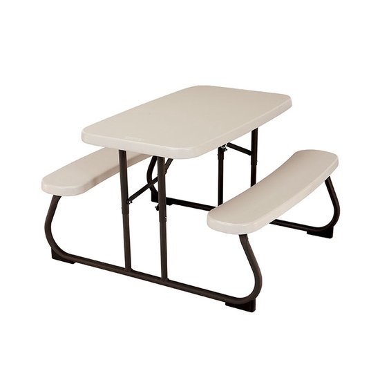 De picknicktafel biedt comfortabel plaats aan vier kinderen en kan worden opgeklapt voor eenvoudige opslag en transport. Gemaakt van high-density polyethyleen (HDPE) en gepoedercoat staal, zijn de Lifetime picknicktafels vlekbestendig, makkelijk schoon te maken, en met uv-bescherming.