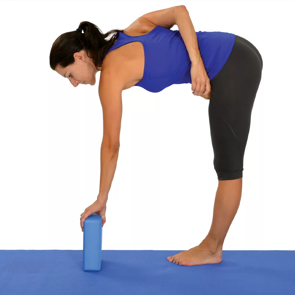 Voor gevorderden werkt de blok juist andersom: een houding uitdagender maken door deze te verdiepen.