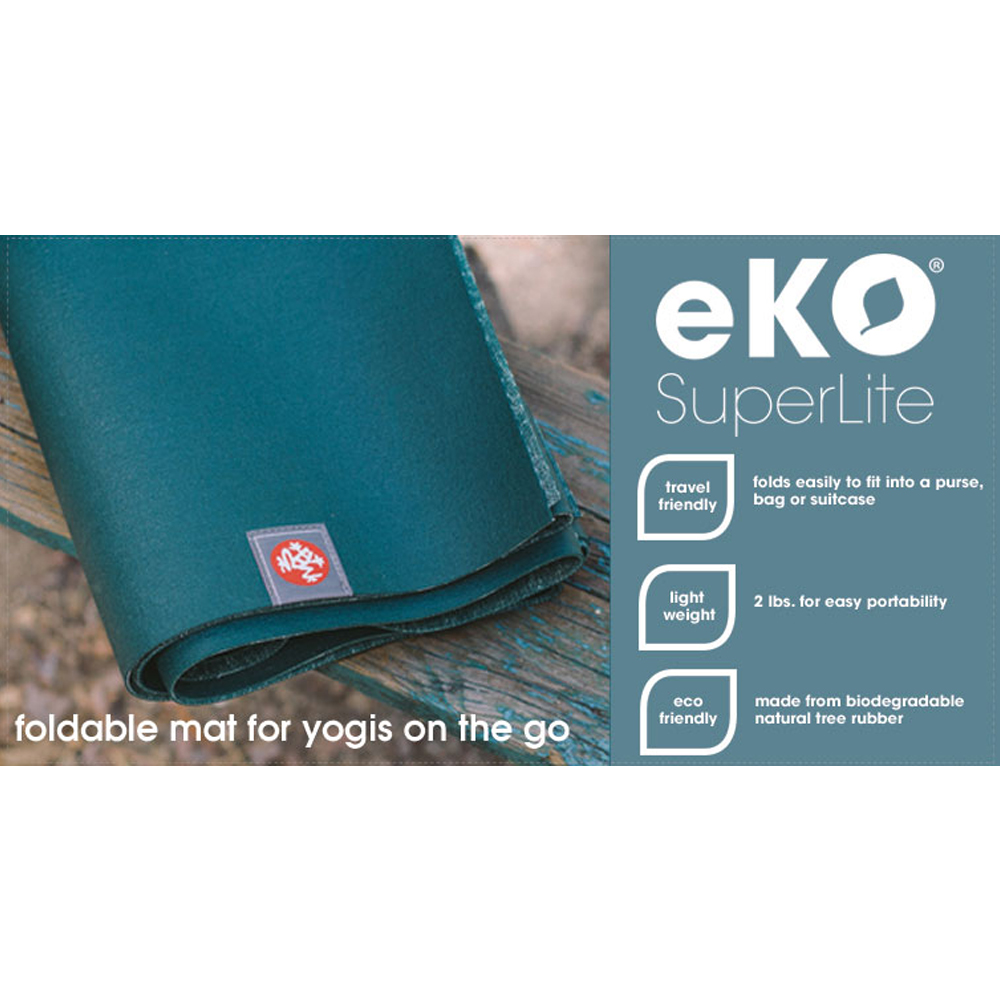 De nieuwste yogamat van de eKO collectie, hij is biologisch afbreekbaar en gemaakt van natuur-rubber. De eKO SuperLite heeft een goede grip op tapijt of op een harde ordergrond. Hij weegt bijna 900 gram en hij is makkelijk op te vouwen zodat u hem mee kunt nemen in uw koffer of handtas. Dit biologische afbreekbare materiaal vervaagt niet en blijft goed van kwaliteit. Hij laat geen sporen achter in de natuur en hij is perfect voor mensen die veel waarde hechten aan een beter millieu.
