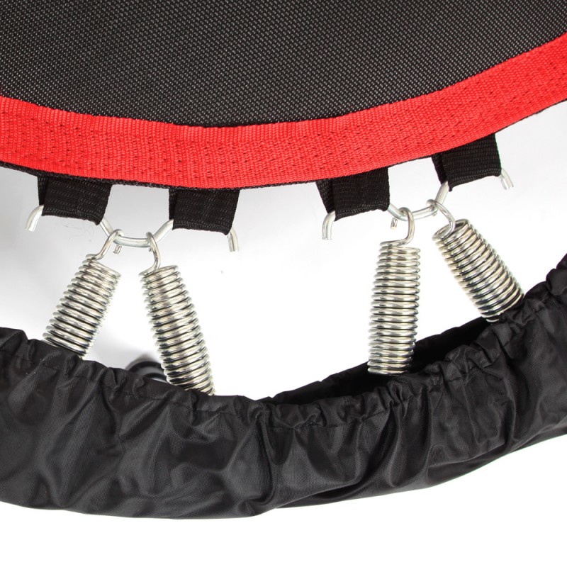 Mini trampoline met handgreep vpldoet aan de hoogste veiligheidsstandaard, certificaten die voldoen aan de meest strikte Europese criteria van de norm (EN-71) van de Duitse TÜV NORD laboratoriumproeven en ASTM international. De niet corrosieve verzinkte springveren zijn van hoge kwaliteit. De topprestatie buizen zijn ook verzinkt en corrosiebestendig. De springmat is gemaakt van UV-bestendig materiaal dat in de VS werd ontwikkeld.