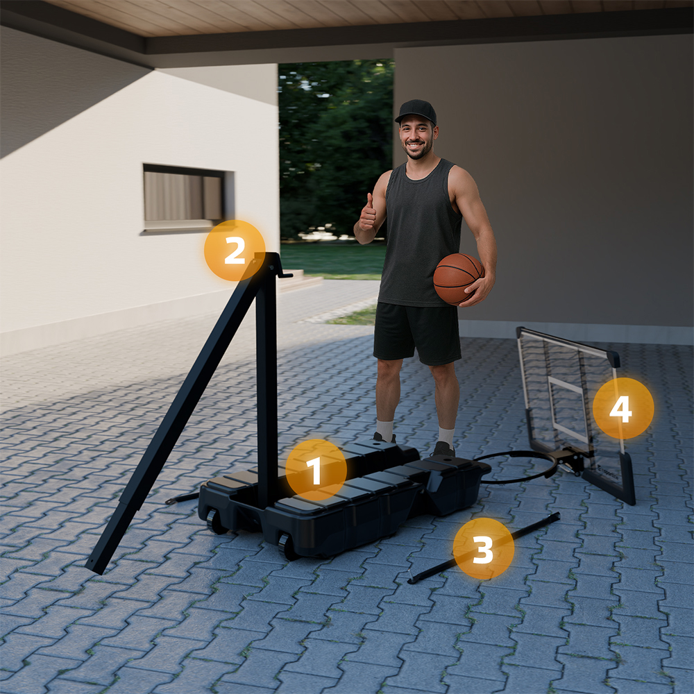 De opvouwbare basketbalring inSPORTline Tifton staat sneller opgesteld dan je je sneakers kunt aantrekken!