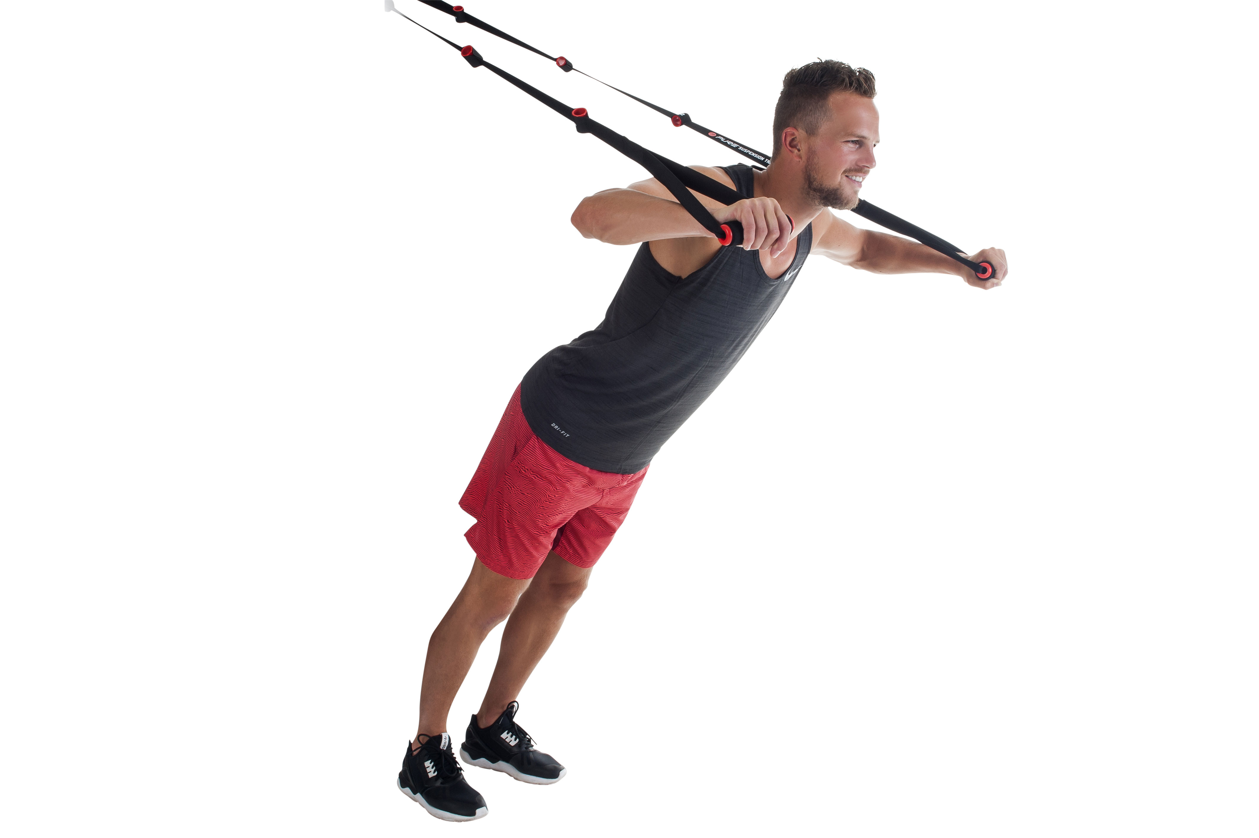 De Pure2Improve Suspension Trainer is dé nieuwe manier van trainen. Geen gesjouw meer met zware gewichten want met dit product train je aan de hand van je eigen lichaamsgewicht! De Suspension Trainer werkt volledig op het TRX principe welke al jaren worden gebruikt door de Navy Seals. Het grote voordeel van de Suspension Strapz is dat dat ze uit 2 losse banden bestaan en daardoor gemakkelijker in diverse posities zijn op te hangen waardoor er een zeer grote diversiteit aan oefeningen mogelijk is. Zo kun je behalve armspieren ook je rug, buik en benen trainen.